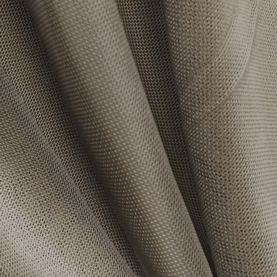 El Tul Elástico - Oslo es un tipo de tela transparente y elástica compuesta por 94% poliéster y 6% elastano, con un gramaje de 80 gr/m2 y un ancho de 147 cm. El color liso impreso es marrón acicoria, representado por el CMYK: 53 49 62 47. Este color secundario combina perfectamente con tonos ocre, beige y marrón oscuro, consiguiendo así una tonalidad cálida y natural. La tela está impresa con el color liso en una sola cara por impresión digital textil.