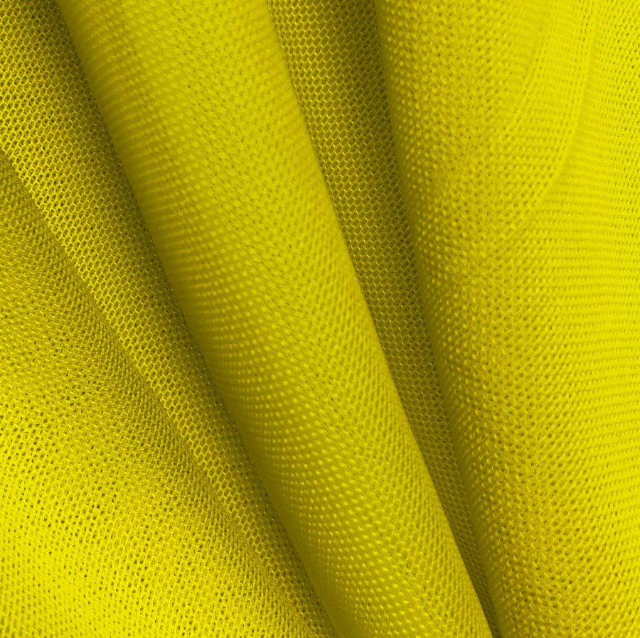 El Tul Elástico - Oslo es un tejido de tul con un 94% poliéster y un 6% de elastano que destaca por su transparencia y su textura ligera. En cuanto al color liso impreso, encontramos un marrón amarillento intenso cuyo CMYK es de 22 18 98 3. Este color es muy versátil y se combina perfectamente con tonos tierra, beiges, blancos o incluso azul marino.