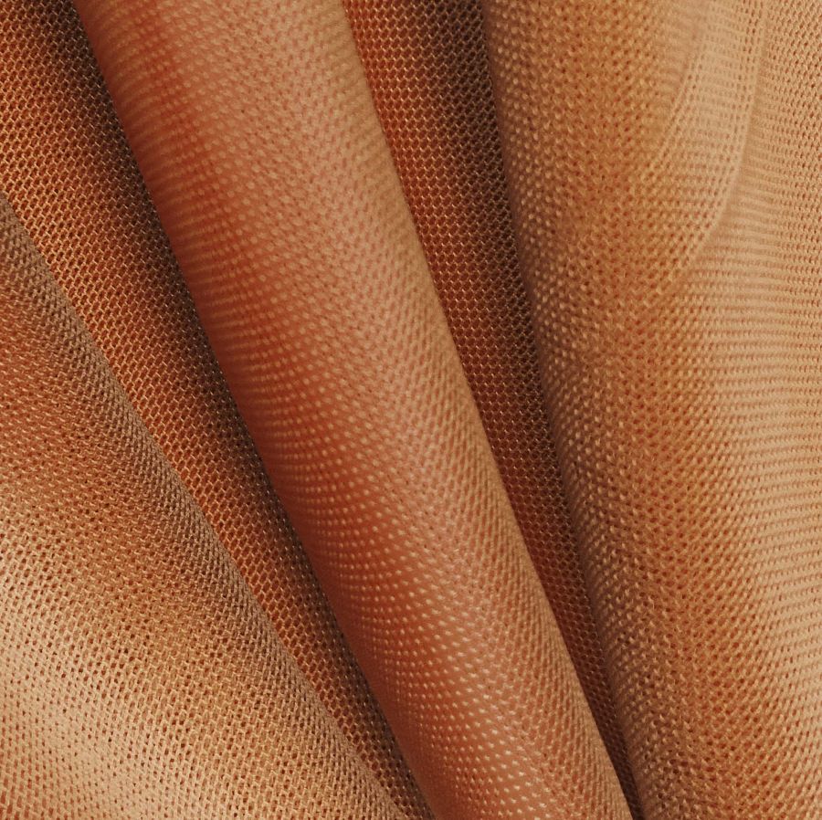 La tela base es el Tul Elástico - Oslo, con composición 94% POLIÉSTER y 6% ELASTANO, con un gramaje de 80 gr/m2, ancho de 147 cm y color liso impreso en Marrón/Bronce Antiguo con CMYK 28 69 93 24. El color Marrón/Bronce Antiguo en esta tela se presenta de forma simbólica y sofisticada, capturando la esencia de la elegancia y el glamour. La combinación perfecta con otros colores son los tonos neutros y los colores oscuros. El tejido está impreso con el color liso a una sola cara por impresión digital textil, que no es un tejido tintado sino impreso por una sola cara.
