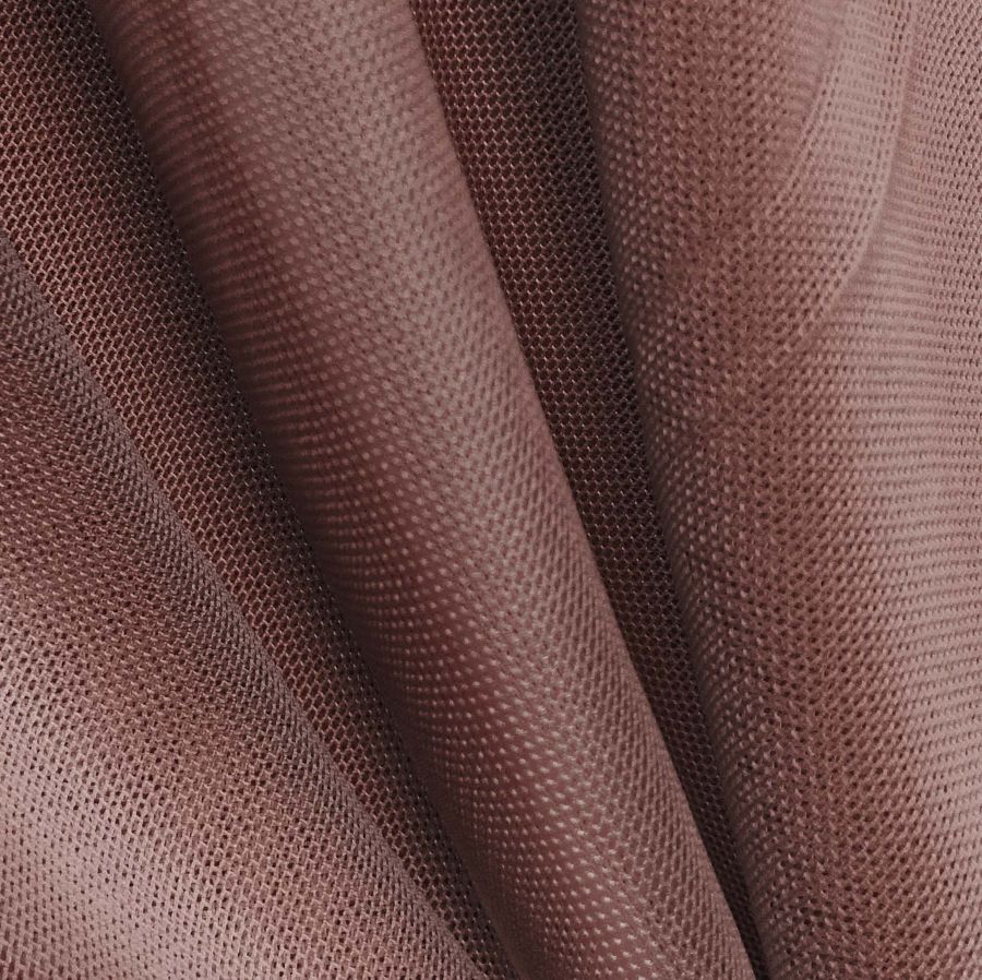 El Tul Elástico - Oslo es una tela de tul de 80 gr/m2 y 147 cm de ancho, compuesta por un 94% de poliéster y un 6% de elastano, de textura transparente y tacto elástico. El color liso impreso es de color marrón castaño con un tono cálido y elegante, reflejado en el CMYK de 39 69 61 55. Este color secundario combina perfectamente con tonos pastel como el rosa palo y el verde menta, tonos tierra como el beige y el tostado y colores fuertes como el rojo. La tela está impresa con el color liso a una sola cara por impresión digital textil, lo que le da una gran calidad y nitidez de imagen.
