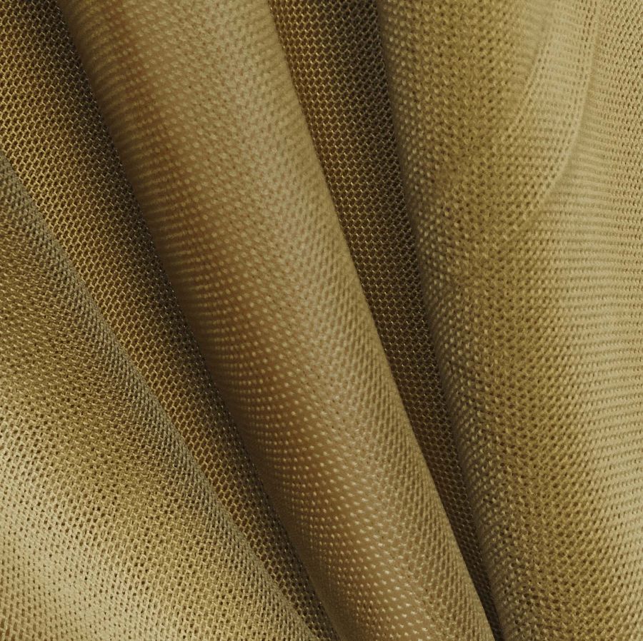 La tela base es el Tul Elástico - Oslo, compuesta por un 94% de poliéster y un 6% de elastano, con un gramaje de 80 gr/m2 y un ancho de 147 cm. El color liso impreso es el Marron Casquillo de Bala, con una combinación de tinta Cyan de 41, tinta Magenta de 50, tinta Yellow de 92 y tinta Black de 42 (CMYK: 41 50 92 42). El marrón es un color terroso y cálido que se asocia a la seguridad y la estabilidad, evocando sensaciones de calidez y protección. Combina especialmente bien con colores como el verde oliva, el mostaza y el beige claro.