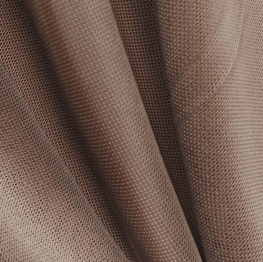 El tul elástico Oslo es un tejido de tul compuesto por un 94% de poliéster y un 6% de elastano con un gramaje de 80 gr/m2 y un ancho de 147 cm. El color liso impreso en este tejido es el marrón coco, con una tinta cyan del 40, una tinta magenta del 56, una tinta yellow del 62 y una tinta black del 51, lo que se traduce en un CMYK de 40 56 62 51.