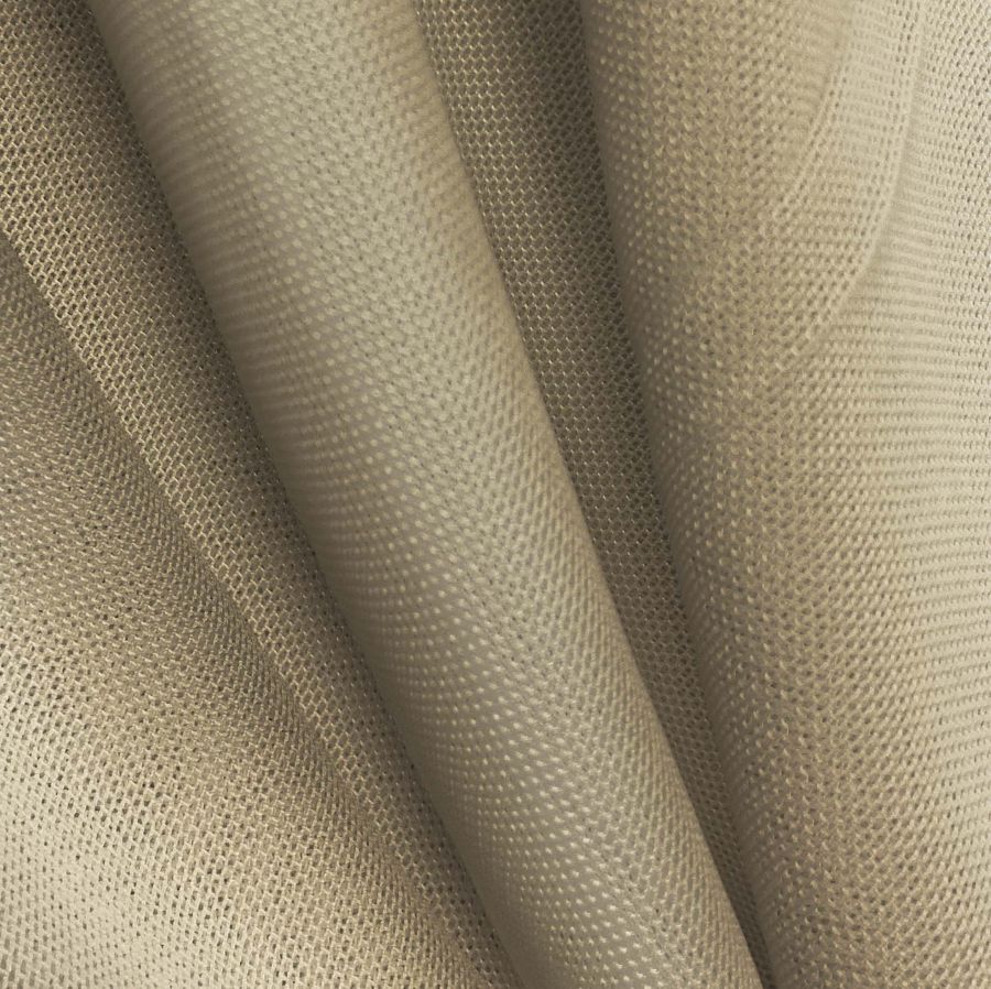 La tela base de este tejido es el Tul Elástico - Oslo, con una composición de 94% POLIÉSTER y 6% ELASTANO, y un gramaje de 80 gr/m2. El color liso impreso es una combinación de Marrón y Gris Pasto, con un CMYK de 35 34 51 16, lo que resulta en un tono oscuro y profundo. Este color secundario simboliza la estabilidad y la elegancia, y se combina muy bien con tonos claros como el beige y el marfil, así como con tonos más cálidos como el rojo oscuro y el naranja.