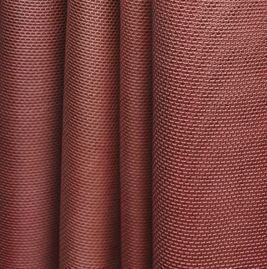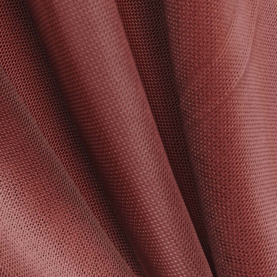 La tela base es el Tul Elástico - Oslo, compuesta por 94% de poliéster y 6% de elastano, con un gramaje de 80 gr/m2 y un ancho de 147 cm. El color liso impreso es marrón-granate con un CMYK de 35 93 82 55. Este color secundario representa la elegancia y sofisticación, transmitiendo una imagen de lujo y exclusividad. Combinado con colores neutros como el blanco o el negro, aporta serenidad y elegancia, mientras que combinado con tonos dorados o plateados, aporta un toque glamuroso y suntuoso.