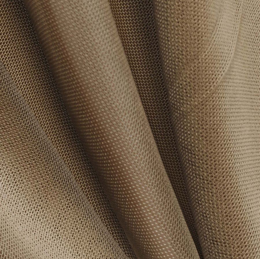 El tul elástico Oslo es una tela de composición de 94% poliéster y 6% elastano con un gramaje de 80 gr/m2 y un ancho de 147 cm. Es una tela transparente y delicada al tacto, con una estructura de malla fina y elástica que permite una gran variedad de aplicaciones. En cuanto al color, el marrón oscuro bronceado tiene un CMYK de 42 53 74 49, reflejando una tonalidad cálida y elegante. Este color combina especialmente bien con tonos pastel, verdes y dorados, creando una atmósfera cálida y acogedora.