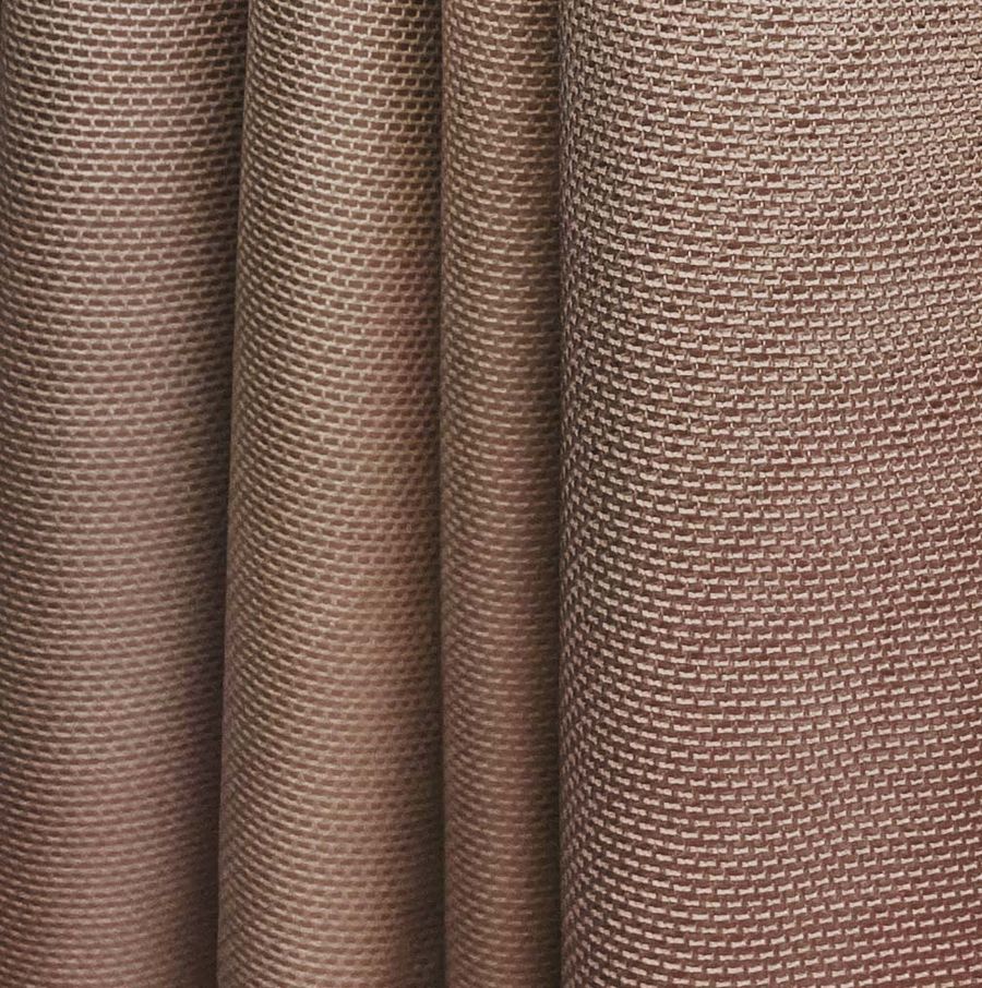 La tela base del tejido es el Tul Elástico - Oslo, una tela transparente y delgada de 94% poliéster y 6% elastano, con un gramaje de 80gr/m2 y un ancho de 147cm. El color liso impreso en esta tela tiene un tono marrón tostado, con un CMYK de 39 59 62 50. Este color secundario es perfecto para combinar con tonos tierra y verdes oscuros.