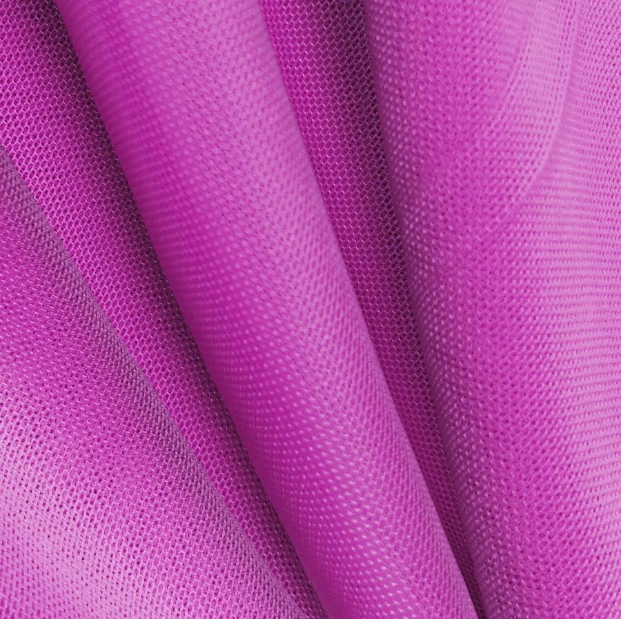 La tela base es el Tul Elástico - Oslo, compuesta por un 94% de poliéster y un 6% de elastano, con un gramaje de 80 g/m2 y un ancho de 147 cm. El color liso impreso es morado bizantino, con una mezcla de tinta cian equivalente al 39%, magenta al 85%, amarillo al 0% y negro al 0%, lo que da lugar a un espacio de color CMYK de 39 85 0 0. El color bizantino, conocido también como púrpura bizantino, es una tonalidad de morado profundo y brillante que representa la nobleza y la realeza. Combina perfectamente con tonalidades de gris, rosa, rojo vino y oro, aportando elegancia y sofisticación en prendas como vestidos y faldas de noche.