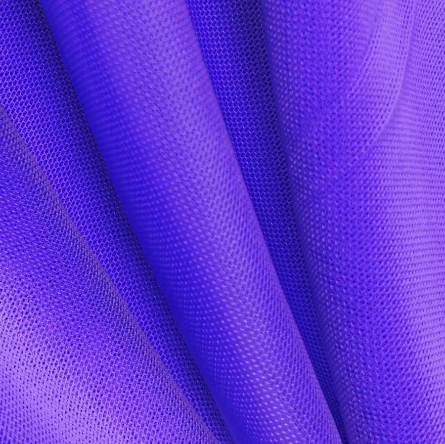 La tela base es el Tul Elástico - Oslo, una tela de composición 94% poliéster y 6% elastano con una suave textura y transparencia. El color liso impreso es un tono morado-púrpura intenso, cuyos valores en CMYK son 86 en cyan y 77 en magenta, sin tintas yellow ni black. Este color transmite sensaciones de misterio y sofisticación. Combina bien con otros tonos vivos como amarillos y verdes ácidos, así como con neutros como grises y blancos.