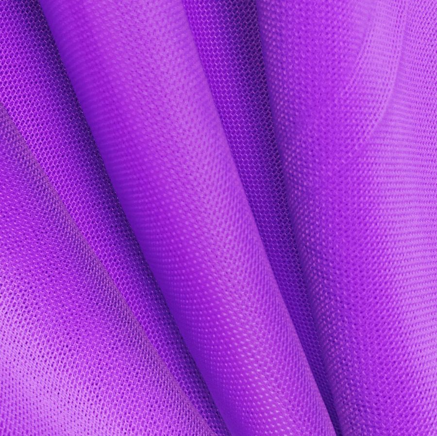 El Tul Elástico - Oslo es una tela de tul de composición 94% poliéster y 6% elastano, con un gramaje de 80 gr/m2 y un ancho de 147 cm. El color liso impreso es un morado intenso con tonos púrpuras, con una mezcla de tinta Cyan de 70 y tinta Magenta de 81, sin presencia de tonos amarillos ni negros, lo que le da un carácter luminoso y vibrante a la tela. Este color combina muy bien con tonos verdes, azules y grises, creando armonías frescas y modernas.