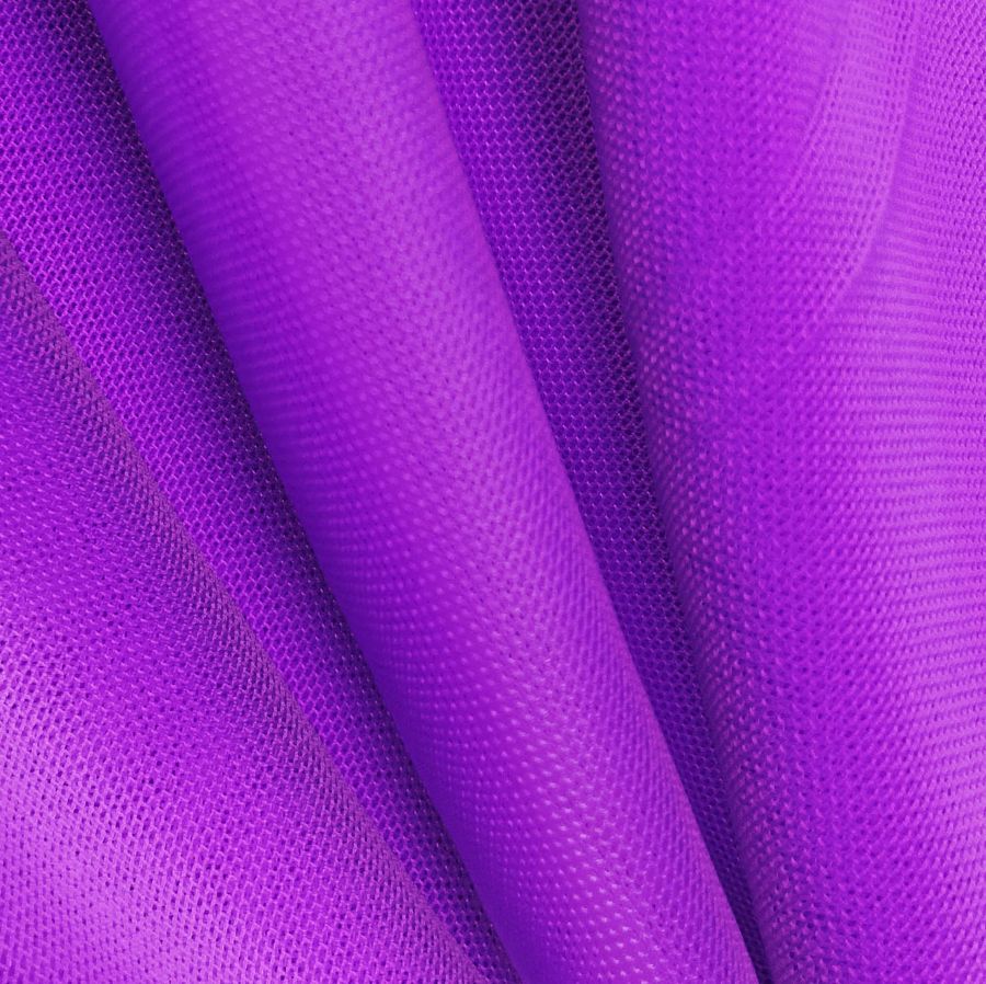 La tela base es el Tul Elástico - Oslo, un tul compuesto por un 94% de poliéster y un 6% de elastano, con un gramaje de 80 gr/m2 y un ancho de tela de 147 cm. El color liso impreso es morado oscuro con una tinta cyan del 70% y una tinta magenta del 85%, mientras que la tinta yellow y black son del 0%, dando como resultado un CMYK de 70 85 0 0. Este color transmite elegancia y sofisticación, así como un toque de misterio y introspección gracias a su profundidad.