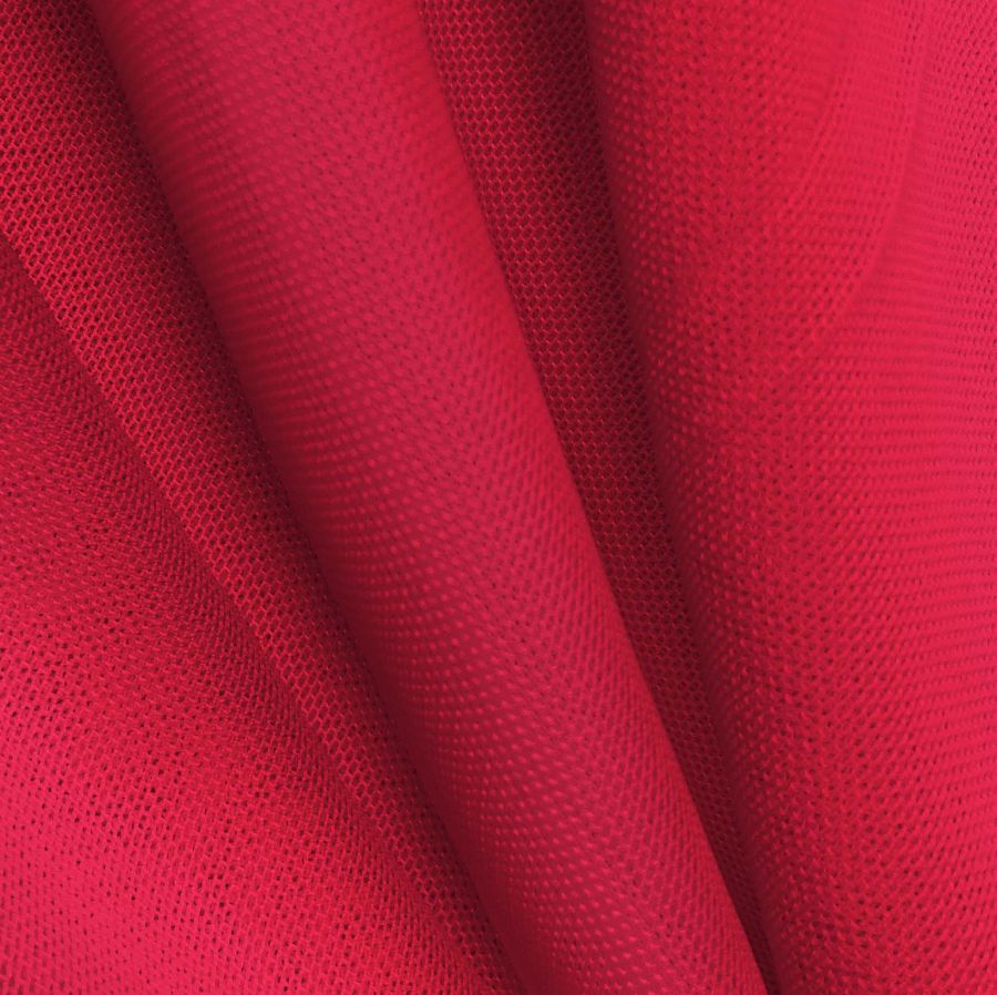 La tela base utilizada para este tejido es el Tul Elástico - Oslo, compuesta por un 94% de poliéster y un 6% de elastano. Su gramaje es de 80 gr/m2 y su ancho de 147 cm. El color liso impreso en esta tela es de un rojo burdeos, cuyo CMYK es 16 98 71 6. Este color transmite una sensación de elegancia y sofisticación, siendo uno de los más populares para prendas de lencería, vestidos y accesorios.
