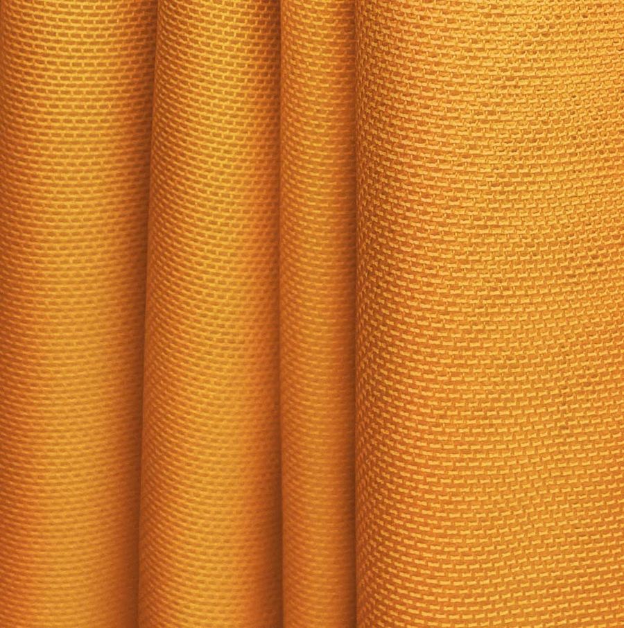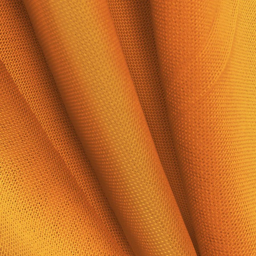La tela base es el Tul Elástico - Oslo, compuesta por un 94% de poliéster y un 6% de elastano, con un gramaje de 80 gr/m2, un ancho de 147cm y una textura transparente y elástica. El color liso impreso es un naranja gigantesco con un CMYK de 0 65 88 0, lo que significa que cuenta con una alta saturación de tonalidad anaranjada con un toque de magenta y amarillo. Este color secundario simboliza la energía, la vitalidad y la creatividad. Es un color cálido y vibrante, que se combina perfectamente con tonos neutros como el blanco, el negro y el gris, así como con colores verdes y marrones.
