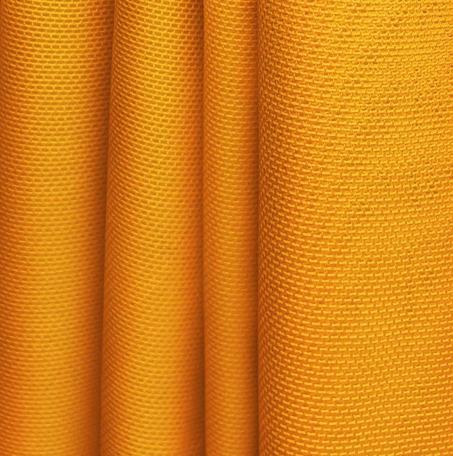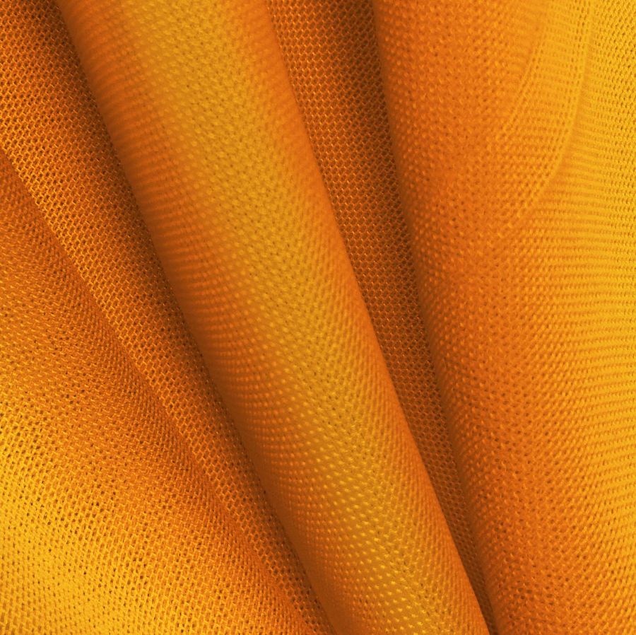 La tela base es el Tul Elástico - Oslo, compuesta por un 94% de poliéster y un 6% de elastano, con un gramaje de 80 gr/m2 y un ancho de 147 cm. El color liso impreso es de un naranja cangrejo que se conforma por una mezcla de cero cian, 64 magenta, 91 amarillo y cero negro en el modelo de color CMYK. Este color primario es símbolo de pasión, creatividad y energía. Por otro lado, el color cangrejo se asocia con la vitalidad del océano, inocencia y alegría juvenil.