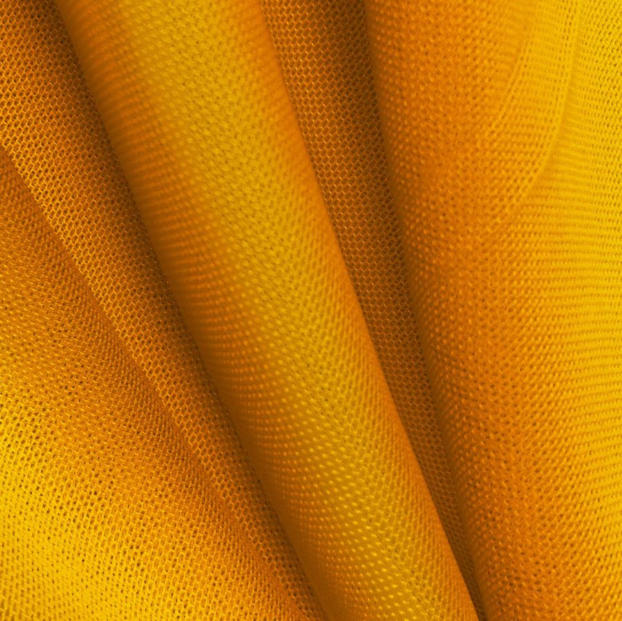 La tela base de este tejido es un tul elástico llamado Oslo, compuesto por 94% poliéster y 6% elastano, con un gramaje de 80 gr/m2 y un ancho de 147 cm. El color liso impreso es un vibrante naranja de seguridad con un CMYK de 0 60 99 0. Este color evoca energía y vitalidad, y combina perfectamente con neutros como el negro o el gris para un look más sofisticado. El tejido está impreso con el color liso a una sola cara por impresión digital textil, siendo importante destacar que no es un tejido tintado sino impreso por una sola cara.