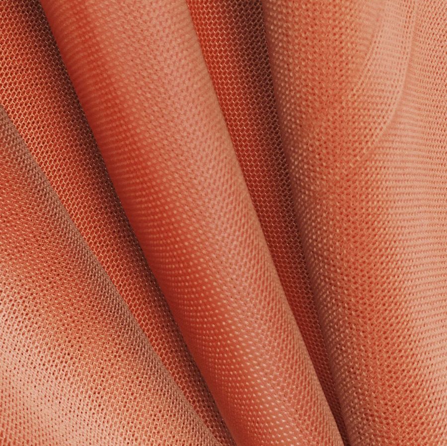 Tul Elástico - Oslo es una tela de tul compuesta por un 94% de poliéster y un 6% de elastano, con un gramaje de 80 gr/m2 y un ancho de 147 cm. Su color liso impreso es un naranja denominado Golden Gate, cuyo contenido en CMYK es 19 75 84 8. La combinación de colores que mejor resalta este tono es con el negro y el blanco, otorgando un look moderno y sofisticado.