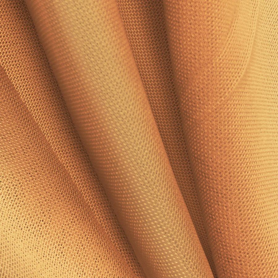 La tela base del tejido es el Tul Elástico - Oslo, una tela delicada y elástica compuesta de 94% poliéster y 6% elastano, con un gramaje de 80 gr/m2 y un ancho de 147 cm. El color liso impreso en la tela es un naranja teja, obtenido mediante la técnica de sublimación con las tintas Cyan 7, Magenta 54, Yellow 70, y Black 1, con un CMYK de 7 54 70 1. Este color se caracteriza por ser un tono cálido y potente, que evoca la naturaleza y las emociones fuertes. Combina muy bien con tonos tierra, verdes oliva y azules marinos, así como con tonos dorados y plateados.