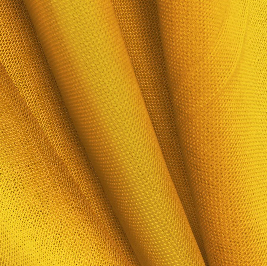 La tela base, Tul Elástico - Oslo, es un tul compuesto por 94% de poliéster y 6% de elastano con un gramaje de 80 gr/m2 y un ancho de 147 cm. El color liso impreso en esta tela es un amarillo caléndula, con una fórmula CMYK de 0 49 93 0. Este color evoca la energía y la vitalidad del sol, la alegría y la felicidad que transmiten los tonos cálidos. Combina a la perfección con tonos fríos como el azul, verde y morado, creando un contraste vibrante y atractivo.