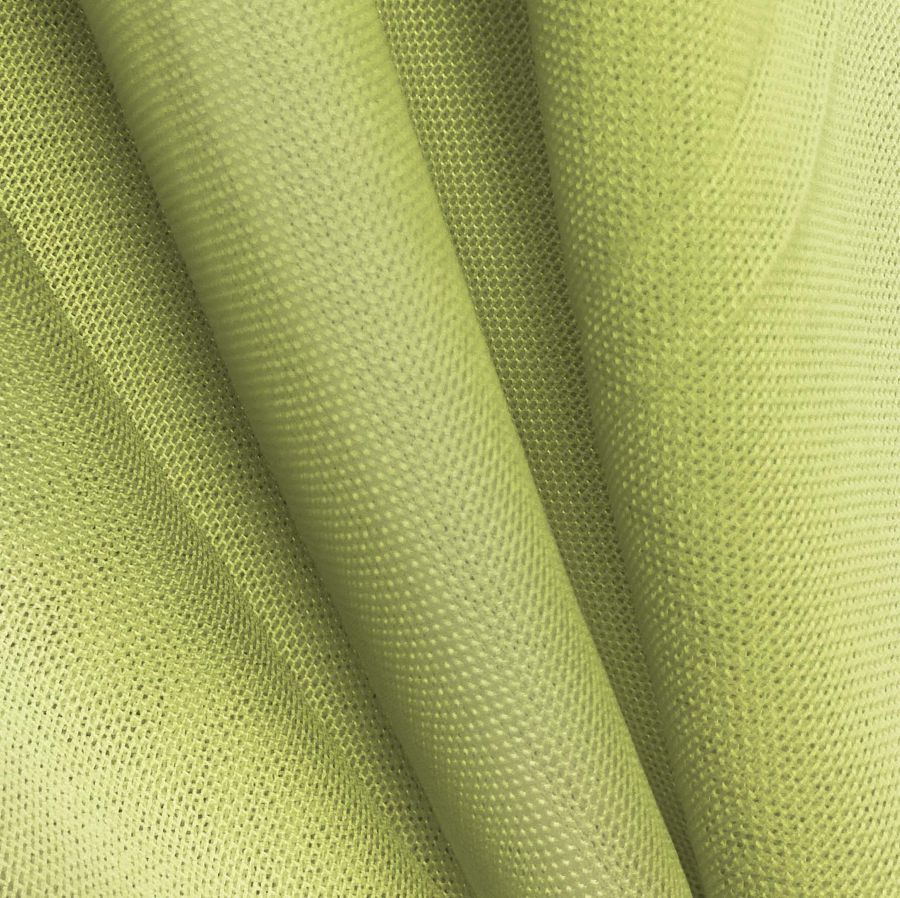La tela base, Tul Elástico - Oslo, es un tejido de tul transparente y elástico, compuesto por 94% poliéster y 6% elastano, con un gramaje de 80 gr/m2 y ancho de 147 cm. El color liso impreso es de un tono amarillo de oliva, el cual es resultado de una combinación CMYK de 34 de cian, 11 de magenta, 70 de amarillo y 0 de negro. Este color se puede combinar con tonos de rosa viejo, morado claro y beige.