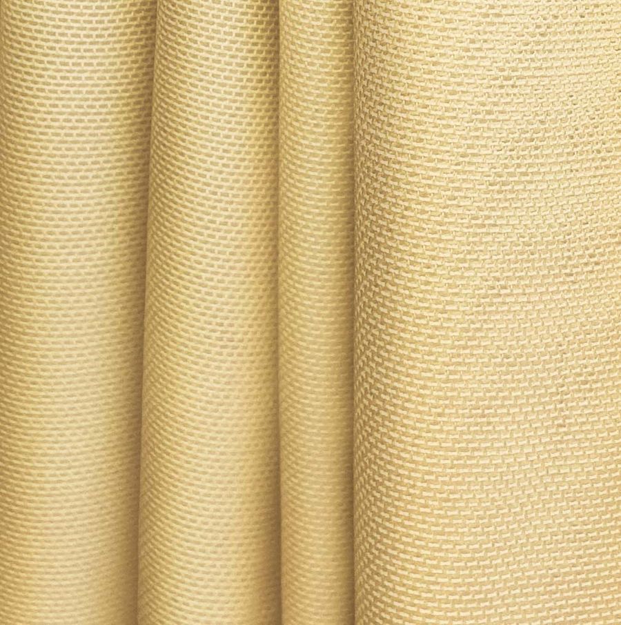 La tela base, Tul Elástico - Oslo, es un tul con una composición de 94% POLIÉSTER y 6% ELASTANO. El color liso impreso es un "Amarillo macarron" con un CMYK de 0 27 58 0, lo que indica que tiene una base de color amarillo, con tintes magenta y amarillo más fuertes para crear un color ligeramente marrón. Este color combina bien con tonos terrosos y verdes. La tela base es texturizada, transparente, elástica y tiene un tacto delgado. La tela está impresa con el color liso a una sola cara por impresión digital textil.