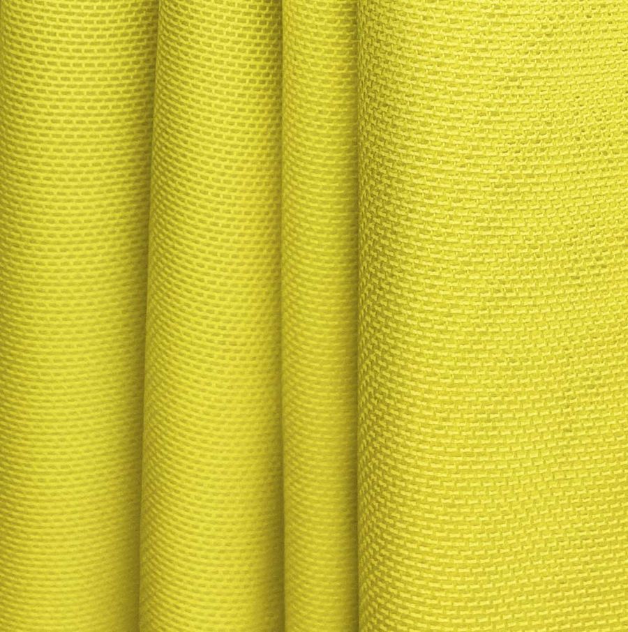 El Tul Elástico - Oslo es una tela suave y delicada con un alto porcentaje de poliéster en su composición para darle ligereza y 6% de elastano para aumentar su elasticidad y permitir el movimiento en la prenda. El color liso impreso de esta tela es un amarillo membrillo vibrante y atractivo, con un CMYK de 11 10 86 0. Este color combina perfectamente con tonos morados y verdes, creando un ambiente cálido y acogedor.