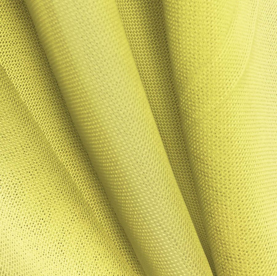 La tela base es el Tul Elástico - Oslo, un tul compuesto por 94% poliéster y 6% elastano, con un gramaje de 80 gr/m2 y un ancho de 147 cm. El color liso impreso es Amarillo Níquel-Titanio, con una tinta cian del 5, magenta del 0, amarillo del 70 y negro del 0, lo que se traduce en un CMYK de 5 0 70 0. Este color secundario es una tonalidad amarilla luminosa, que evoca alegria y energía. Combina especialmente bien con colores de la naturaleza, como los verdes, tierras, azules y marrones.