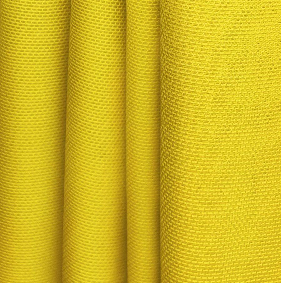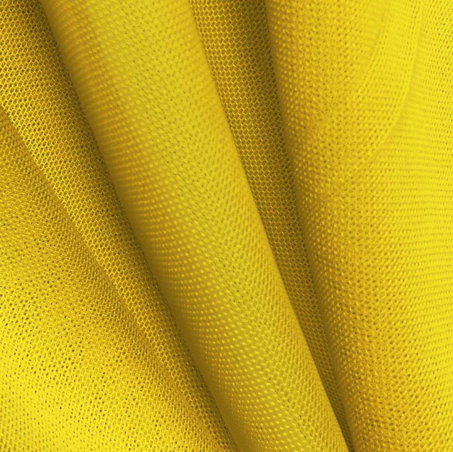 La tela base es el Tul Elástico - Oslo, compuesta por 94% poliéster y 6% elastano con un gramaje de 80 gr/m2 y un ancho de 147 cm. El color liso de la tela es amarillo permanente impreso en una sola cara por medio de la tecnología de sublimación, con un CMYK de 6 27 91 0 y una alta concentración de tinta yellow. Este color es vibrante y alegre, asociado con la luz del sol y la energía positiva. El amarillo combina especialmente bien con tonos pasteles, tonos tierra y grises.