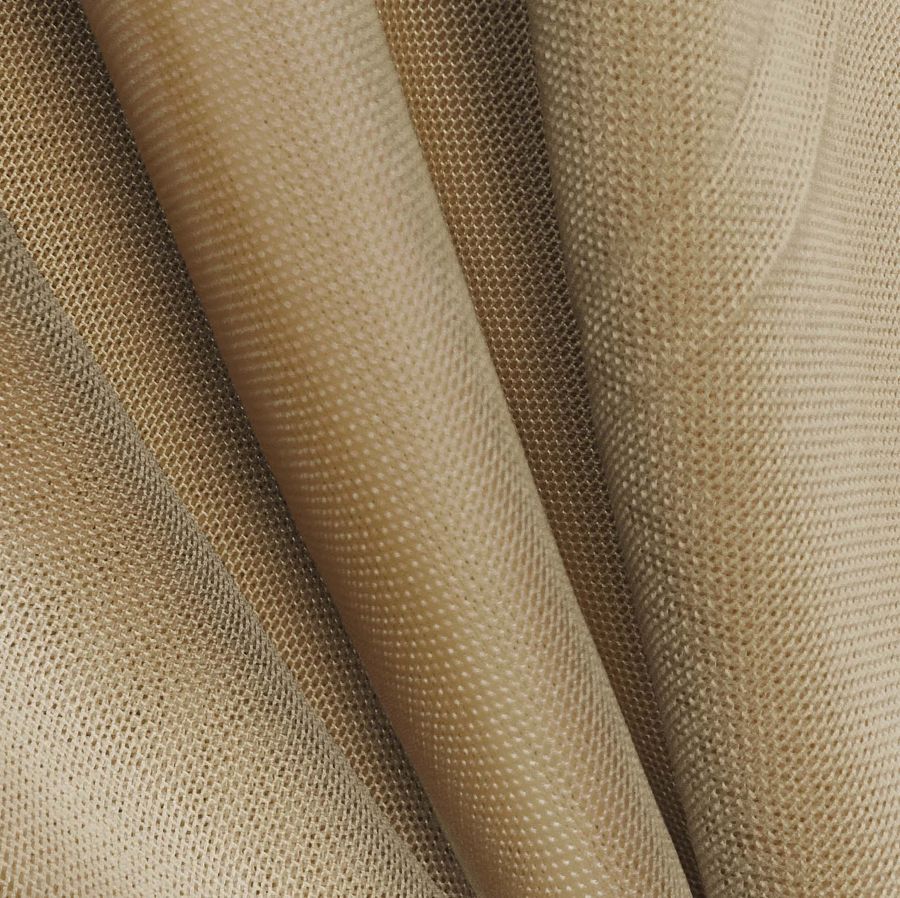 La tela base es un Tul Elástico - Oslo, compuesta por 94% poliéster y 6% elastano, con un gramaje de 80 gr/m2 y una anchura de 147 cm. El color liso impreso es Marron Ante con un CMYK de 35 42 65 27, que se caracteriza por una elegante tonalidad marrón suave y terrosa. Este color combina muy bien con tonos beige, marrones más fuertes y verdes oscuros.