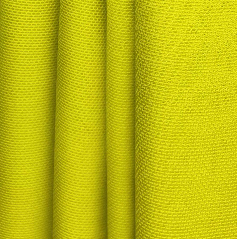 La tela base en cuestión es el Tul Elástico - Oslo, compuesta por un 94% de poliéster y un 6% de elastano, con un gramaje de 80 gr/m2 y un ancho de 147 cm. Su color liso impreso es un amarillo sucio, con un CMYK de 26 12 97 1. Este color puede describirse como una mezcla entre un amarillo oscuro y un beige, lo que le da un aspecto suave y acogedor. Combinado con otros colores, resalta especialmente con tonos claros como el blanco, el beige o el crema.