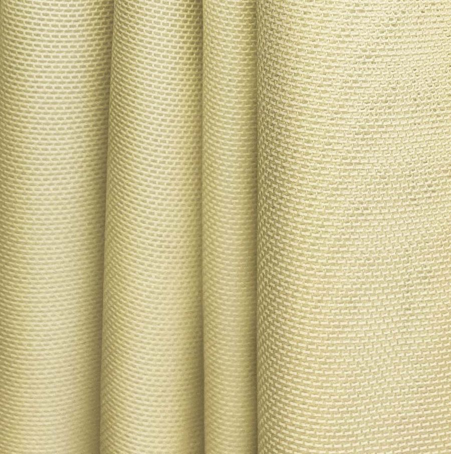 La tela base es el Tul Elástico - Oslo, compuesta por un 94% de poliéster y un 6% de elastano, con un gramaje de 80 gr/m2 y un ancho de 147 cm. El color liso impreso es amarillo viejo, con un CMYK de 12 17 54 1. Este color secundario evoca la nostalgia, la calidez y la armonía, combinando especialmente bien con el blanco, el negro, el dorado y un suave rosa pastel.