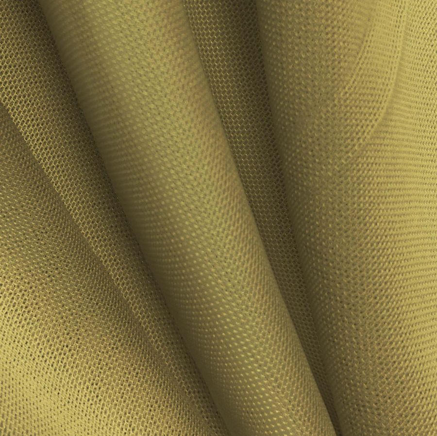El Tul Elástico - Oslo es una tela transparente y elástica, con una composición de 94% poliéster y 6% elastano. El color liso impreso en esta tela es una mezcla de verde y verde amarillo, indicado por el CMYK de 42 39 74 26, que le confiere una tonalidad brillante y luminosa. Este color secundario combina perfectamente con tonos como el blanco, beige, rosa y dorado, siendo ideal para la confección de prendas y accesorios de moda y lencería.