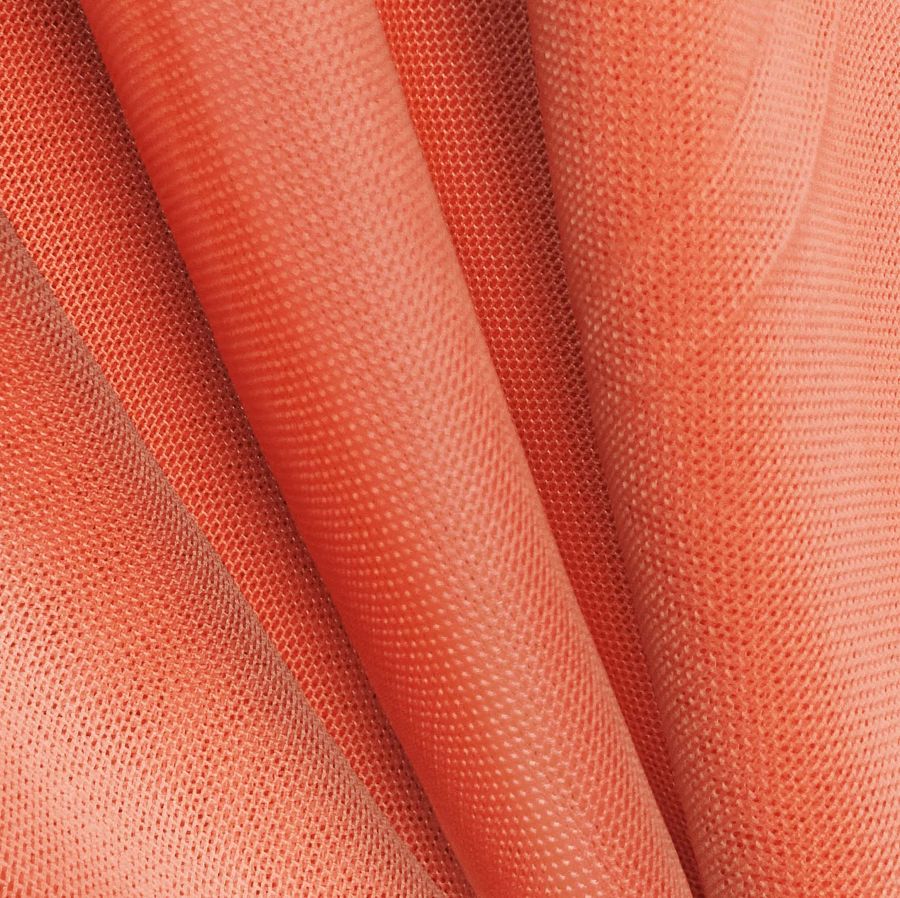 El Tul Elástico - Oslo es una tela transparente de 80 gr/m2 con composición de 94% POLIÉSTER y 6% ELASTANO. El color liso impreso es Naranja-Salmón, con un CMYK de 0 76 76 0, lo que indica que la tinta utilizada ha sido principalmente magenta y amarilla. Este color primaveral y alegre combina perfectamente con tonalidades en verde, blanco y celeste, y es ideal para confeccionar prendas frescas y luminosas. La tela está impresa a una sola cara por impresión digital textil, lo que significa que no se trata de un tejido tintado, sino impreso por una sola cara con tecnología de sublimación.
