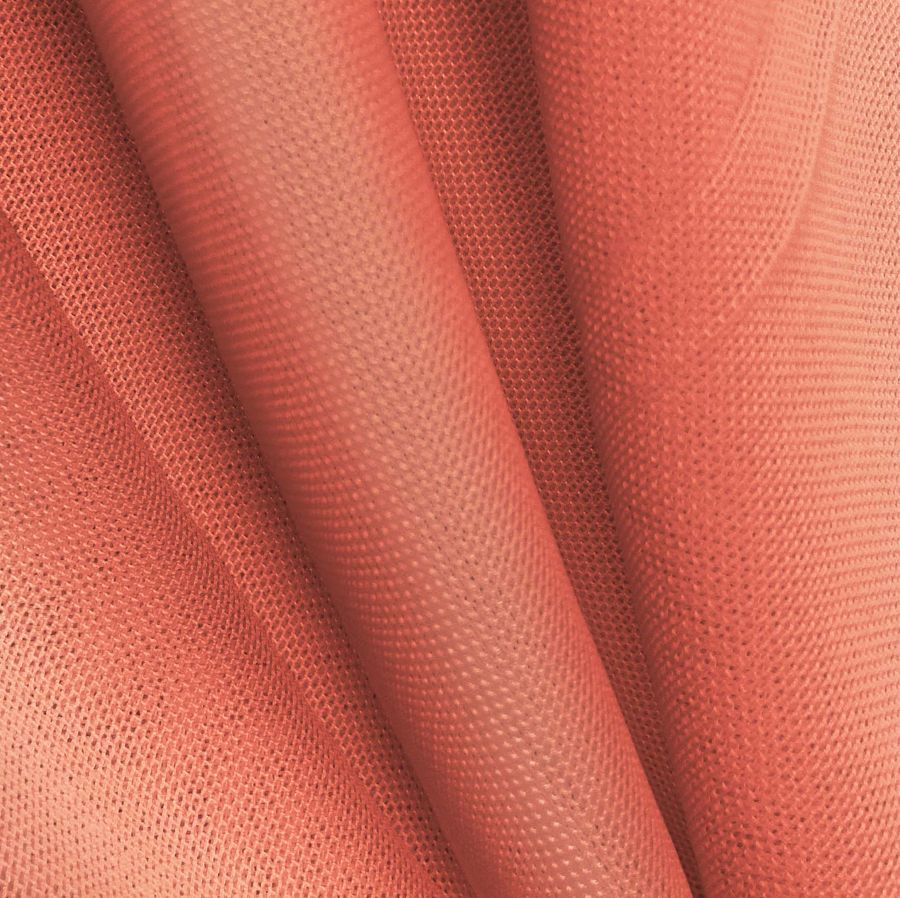 La tela base, Tul Elástico - Oslo, cuenta con una composición del 94% POLIÉSTER y un 6% de ELASTANO, con 80 gr/m2 de gramaje y una anchura de 147 cm. En cuanto al color liso impreso, nos encontramos ante un tono Rojo Agridulce, con una mezcla de tintas Cyan (0), Magenta (69), Yellow (57) y Black (0) en un perfil de color CMYK de 0 69 57 0. Este color se presenta como una combinación audaz y viva entre el rojo y un toque de naranja.