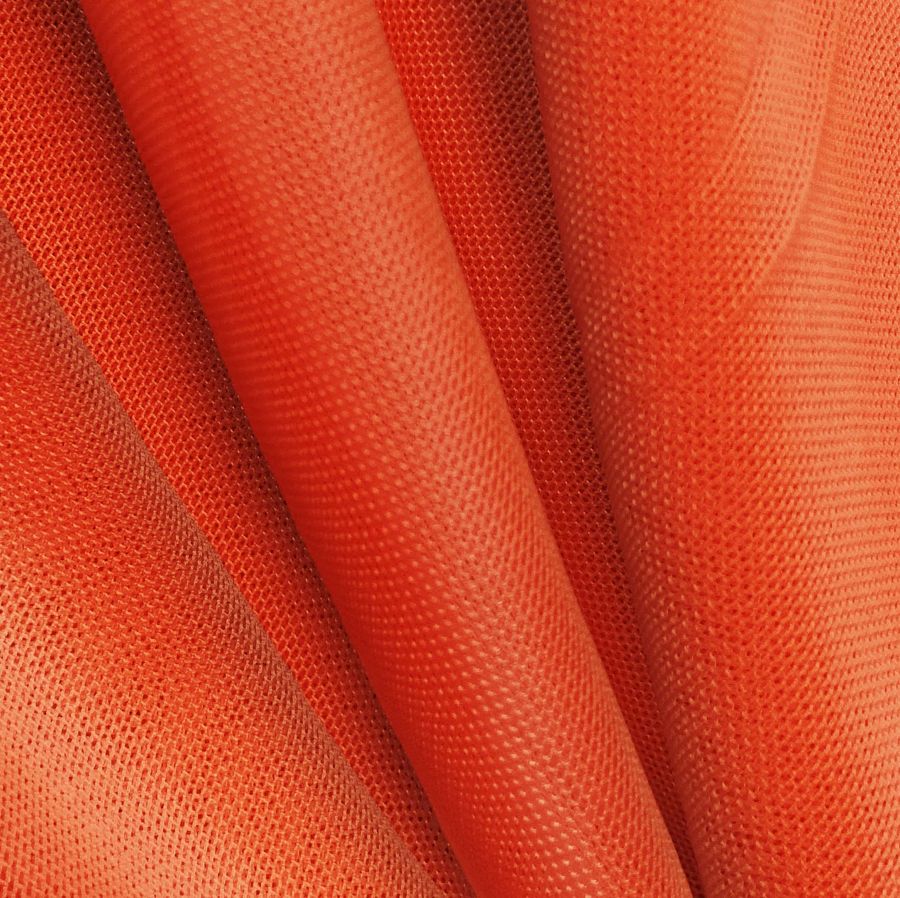 La tela base de este tejido es el Tul Elástico - Oslo, compuesta por un 94% de poliéster y un 6% de elastano, con un gramaje de 80 gr/m2 y un ancho de 147 cm. El color liso impreso en este tejido es un rojo bermellón, con una composición de tinta cian 0, magenta 91, yellow 100 y black 0. El CMYK de este color es 0 91 100 0.