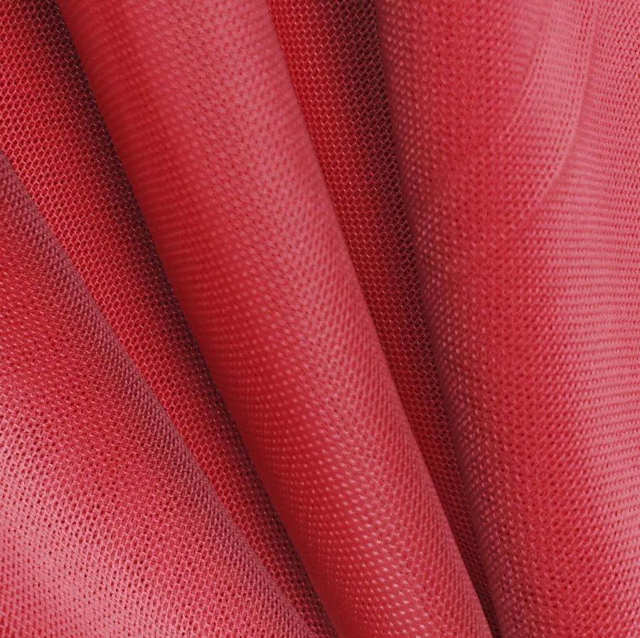 La tela base de este tejido es el Tul Elástico - Oslo, compuesta por un 94% de poliéster y un 6% de elastano, con un gramaje de 80 gr/m2 y un ancho de 147 cm. El color liso impreso, Rojo Bermellón de China, tiene un CMYK de 20 99 85 13. Este color es vibrante y cálido, con matices profundos que se asemejan a la fruta madura. Combina muy bien con tonos neutros como el blanco, el gris y el negro, así como con tonalidades más oscuras de verde.