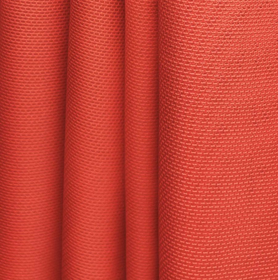 La tela base es el Tul Elástico - Oslo, compuesta por 94% de poliéster y 6% de elastano, con un gramaje de 80 gr/m2 y un ancho de 147cm. El color liso impreso es un rojo intenso, cuyo CMYK es de 5 87 82 0, lo que se traduce en una cantidad considerable de magenta y amarillo con un toque mínimo de cian. Este color secundario sugiere un carácter apasionado, dinámico y enérgico, y combina óptimamente con tonos verdes, azules oscuros, blancos e incluso negros.