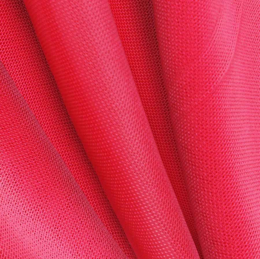 La tela base es el Tul Elástico - Oslo, con una composición de 94% poliéster y 6% elastano. Su gramaje es de 80 gr/m2 y tiene un ancho de 147 cm. El color liso impreso en esta tela es el Rojo Tractor Rojo, que se caracteriza por tener una tinta magenta del 94% y una tinta amarilla del 71%. Este color es intenso y vibrante, con un tono rojo tirando a naranja que lo hace único. Combina especialmente bien con tonos anaranjados, amarillos y rosados, creando combinaciones audaces y originales.