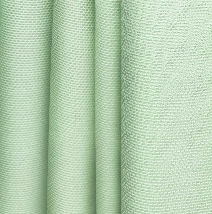 La tela base es Tul Elástico - Oslo, compuesta por 94% de poliéster y 6% de elastano con un gramaje de 80 gr/m2 y una anchura de 147 cm. Su color liso impreso es una combinación de verde y crema con un contenido de tinta cyan del 31%, magenta del 0%, yellow del 39% y black del 0% en un CMYK de 31 0 39 0. Este color secundario transmite la frescura y la suavidad de la naturaleza, combina bien con tonos blanco roto y beige, creando una sensación de relajación y armonía.