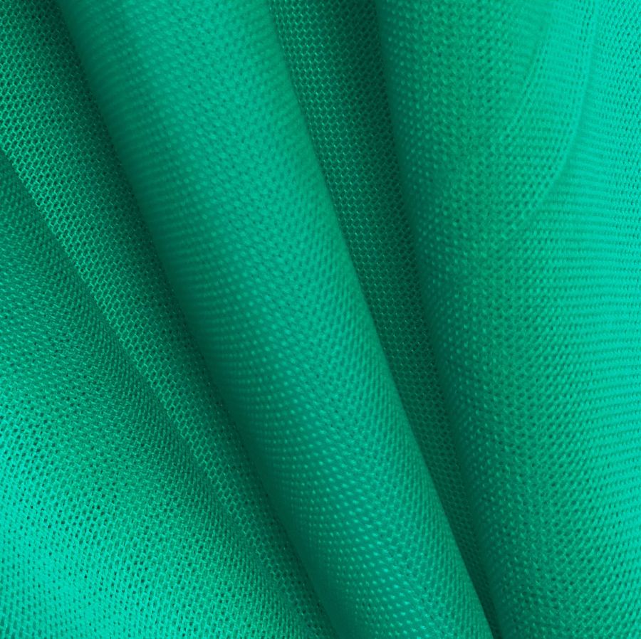 El tul elástico Oslo es una tela traslúcida y elástica que cuenta con una composición de 94% poliéster y 6% elastano, con un gramaje de 80 gramos por metro cuadrado y un ancho de 147 centímetros. El color liso que se imprime sobre esta base de tul es un verde esmeralda, que se compone de una tinta cian del 81%, una tinta magenta del 13%, una tinta amarilla del 65% y una tinta negra del 1%, con un CMYK de 81 13 65 1. Este color evoca la naturaleza y la frescura, y combina especialmente bien con tonos tierra, marrones y beige.