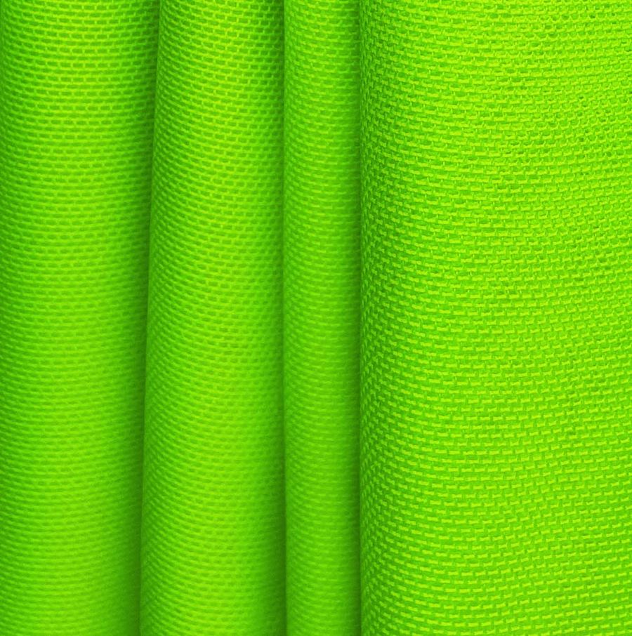La tela base es el Tul Elástico - Oslo, compuesto por 94% de poliéster y 6% de elastano, con un gramaje de 80 gr/m2 y 147 cm de ancho. El color liso impreso tiene un CMYK de 61 0 100 0, que se traduce en un verde brillante, similar al verde césped. Este color secundario evoca la naturaleza y simboliza la frescura y la energía. Combina a la perfección con tonos marrones y tierra, beige, blanco, rosa y azul. Cabe destacar que la tela está impresa con el color liso por una sola cara por impresión digital textil, lo que la hace ideal para proyectos de alta resolución y con una amplia gama de colores.