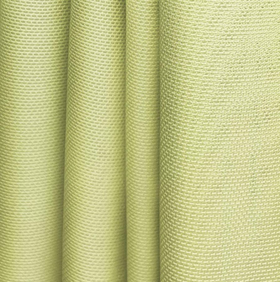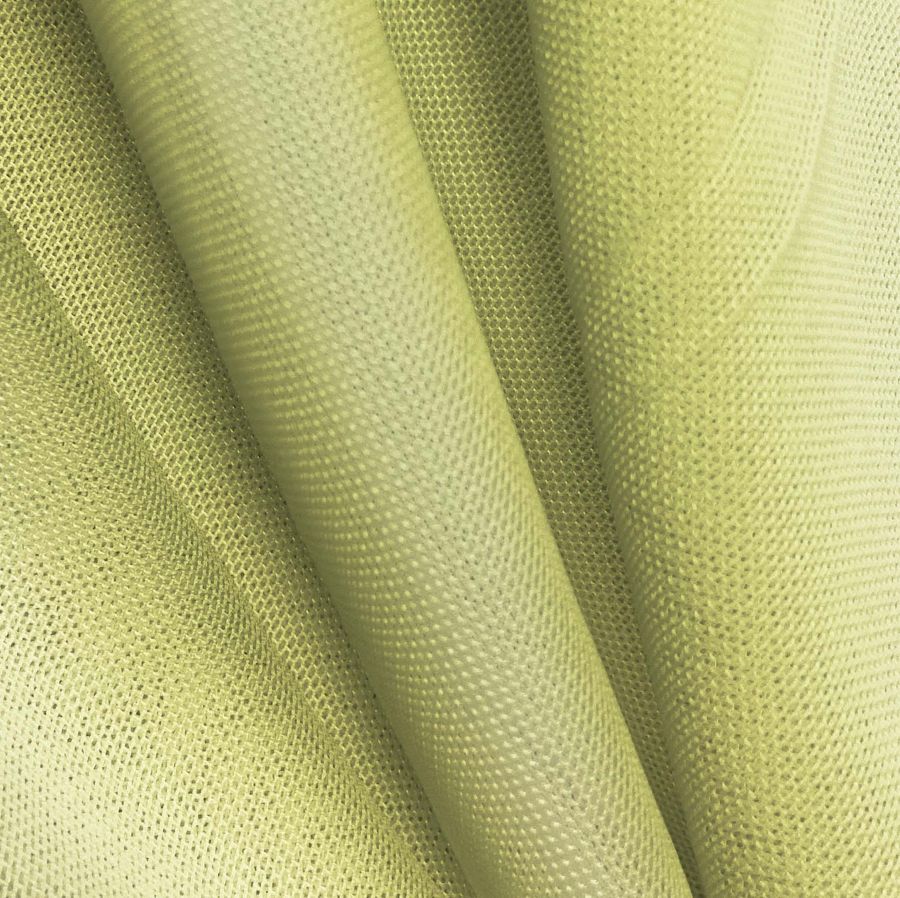La tela base es el Tul Elástico - Oslo, un tejido de tul compuesto por un 94% de poliéster y un 6% de elastano con un gramaje de 80 gr/m2 y un ancho de 147 cm. El color liso impreso tiene un CMYK de 23 7 62 0, lo que se traduce en un tono verde uva espinas. Este color simboliza la tranquilidad, la serenidad y la introspección, además de estar relacionado con la creatividad y la sofisticación, siendo un tono que combina muy bien con otros colores naturales como el verde claro, el blanco, el negro, el plata y el dorado.