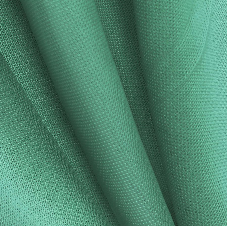La tela base es un Tul Elástico - Oslo de 80 gr/m2 compuesta en un 94% de poliéster y un 6% de elastano, con un ancho de 147 cm y cuidados específicos. El color liso impreso en la tela es el Verde Dollar, con un CMYK de 70 25 59 7. Este tono secundario evoca la naturaleza y la fertilidad, y combina especialmente bien con los colores tierra, marrones, dorados y amarillos.