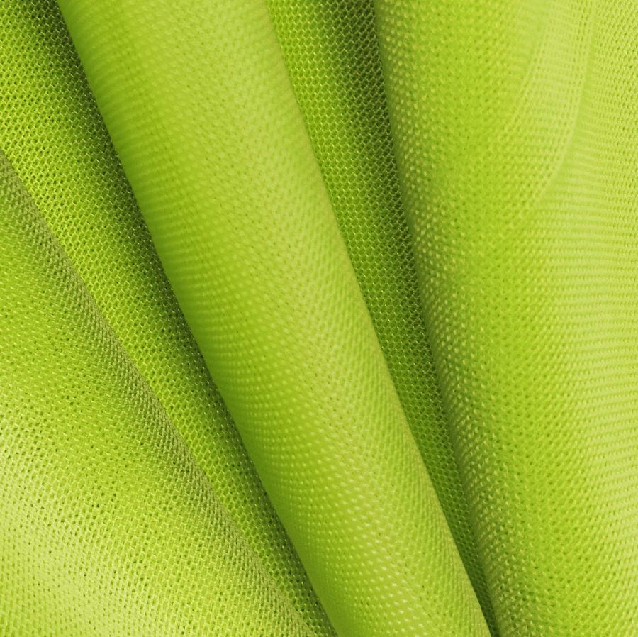 El Tul Elástico - Oslo es una tela suave y elástica compuesta por 94% poliéster y 6% elastano de 147 cm de ancho y 80 gr/m2. El color liso impreso en esta tela es un refrescante verde iguana que se compone de las siguientes tintas: Cyan 48, Magenta 3, Yellow 100 y Black 0, con un CMYK de 48 3 100 0. Este color transmite sensaciones de descanso, calma y equilibrio, es un color de naturaleza asociado a la esperanza, la armonía y el crecimiento. Combina perfectamente con otros verdes más oscuros y marrones en las diversas aplicaciones de moda, lencería, accesorios y novias para las que se utiliza.