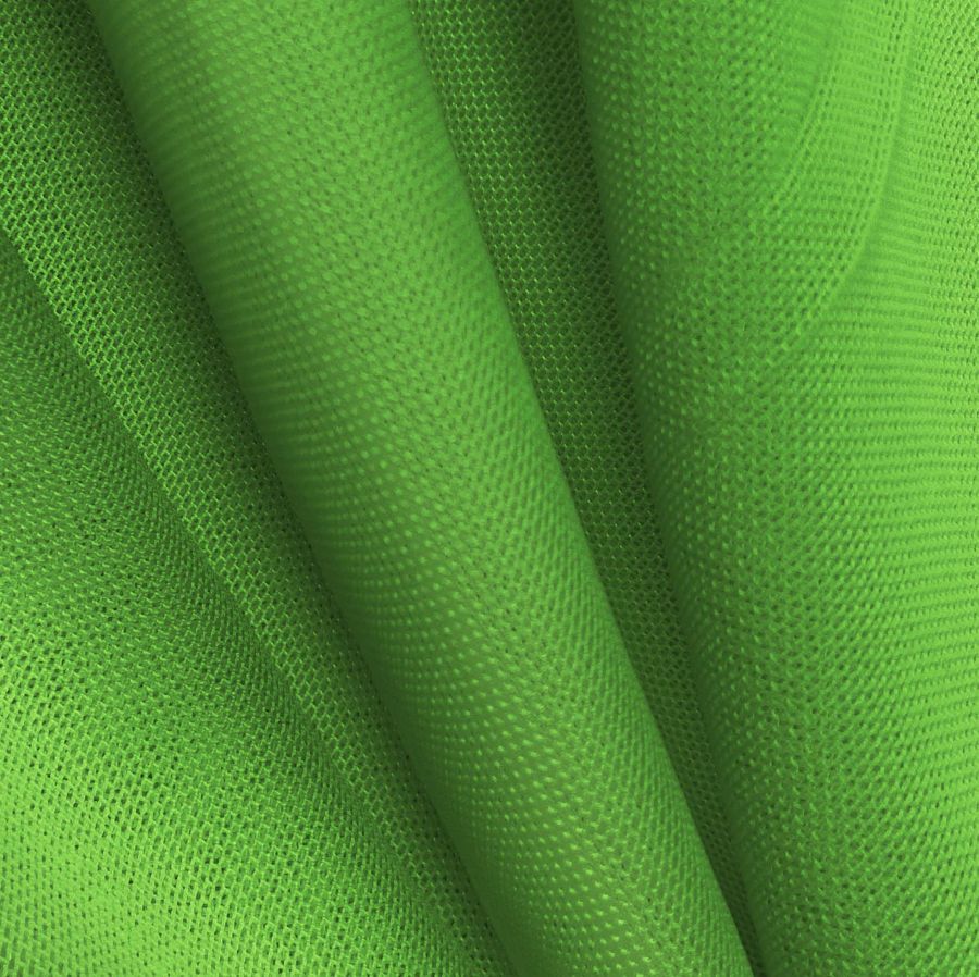 El Tul Elástico - Oslo es un tejido de tipo tul compuesto por un 94% de poliéster y un 6% de elastano, con un gramaje de 80 gr/m2 y un ancho de 147 cm. El color liso impreso en este tejido es un vibrante Verde Irlandés, con los siguientes valores de CMYK: 71 en Cian, 18 en Magenta, 98 en Amarillo y 3 en Negro.