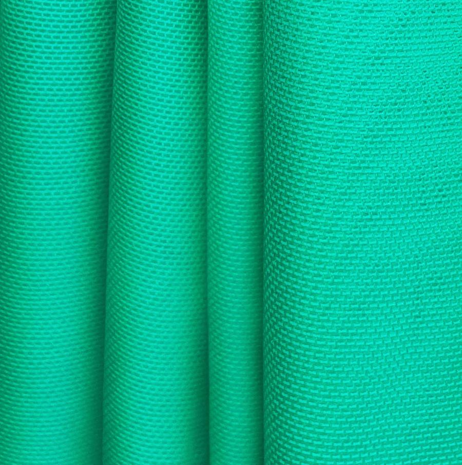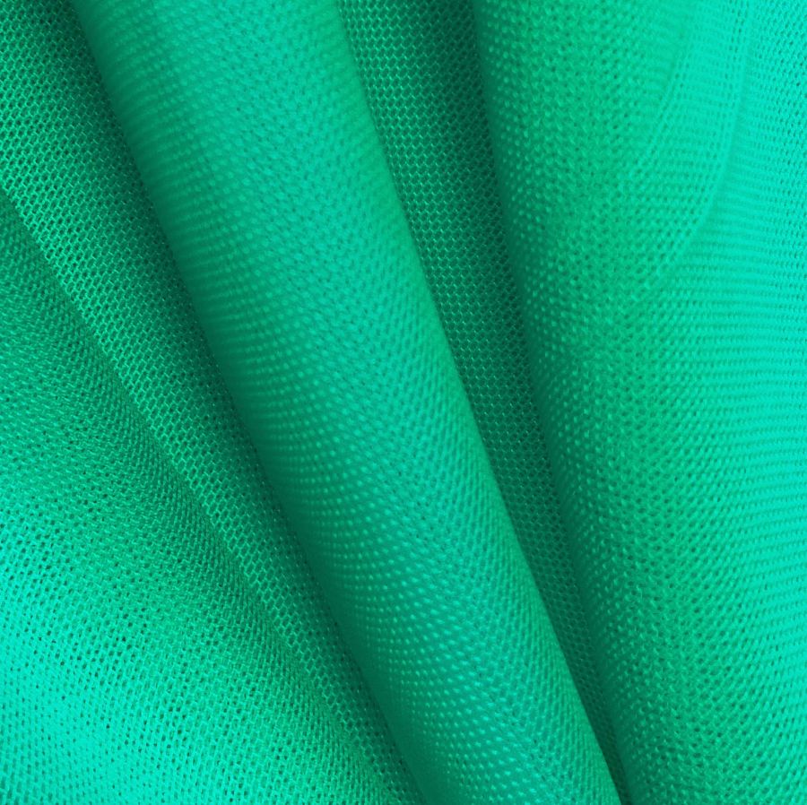 La tela base es el Tul Elástico - Oslo, compuesta por 94% poliéster y 6% elastano, con un gramaje de 80 gr/m2 y un ancho de 147 cm. El color liso impreso es un Verde Mar con una mezcla de cian y amarillo en CMYK de 73 0 61 0. Este color simboliza la naturaleza, la tranquilidad y el equilibrio. Además, combina muy bien con tonos fríos como el azul, turquesa y morado. La tela está impresa a una sola cara por impresión digital textil.