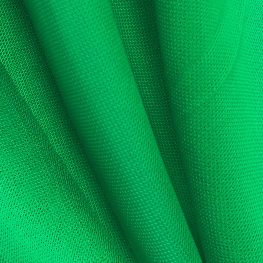 La tela base es el Tul Elástico - Oslo, compuesta por un 94% de poliéster y un 6% de elastano con un gramaje de 80 gr/m2 y una anchura de 147 cm. En cuanto a su color, está impreso en un verde pigmento con las tintas de cian 80, magenta 2, yellow 87 y black 0, lo que se traduce en un CMYK de 80 2 87 0. Este color secundario verde oscuro transmite serenidad y sofisticación, y combina a la perfección con tonos crudos, dorados y plateados que realzan la tonalidad y la luminosidad de la tela. Es importante indicar que este tejido está impreso con el color liso a una sola cara por impresión digital textil.