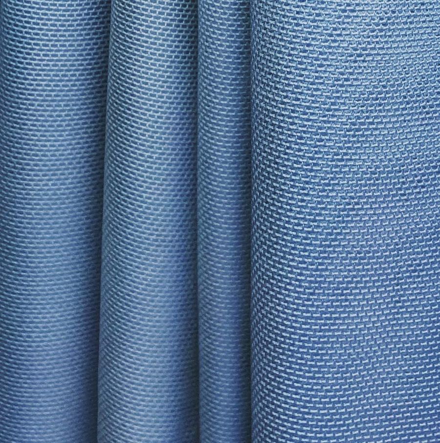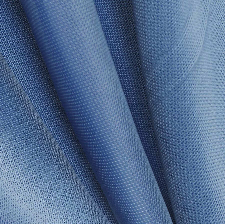 La tela base de este tejido es el Tul Elástico - Oslo, con una composición de 94% poliéster y 6% elastano. Su color liso impreso es un Azul Clemátide, cuyo CMYK es de 82 59 24 8. El color secundario que se puede apreciar en este azul es el gris, lo que aporta a la tela una sensación de delicadeza y elegancia. El Azul Clemátide combina perfectamente con tonos blancos, grises y tonos rosas pastel.