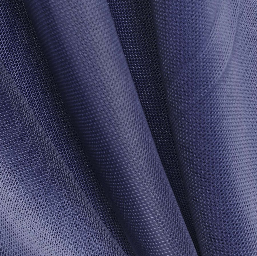 La tela base es el Tul Elástico - Oslo, compuesta por 94% poliéster y 6% elastano, con un gramaje de 80 gr/m2 y un ancho de 147 cm. El color liso impreso en esta tela es Azul Nocturno, con un CMYK de 98 90 36 36. Este color es profundo y evocador, simbolizando la tranquilidad de la noche y la estabilidad emocional. Combina perfectamente con tonos claros y brillantes, como el blanco o el dorado.