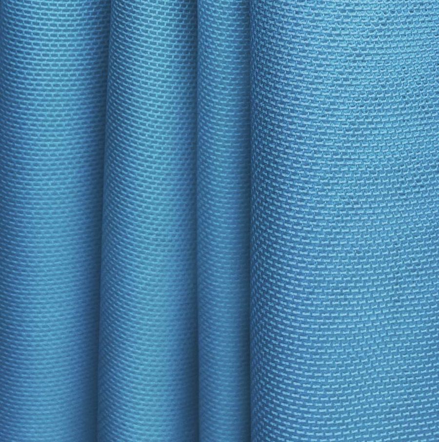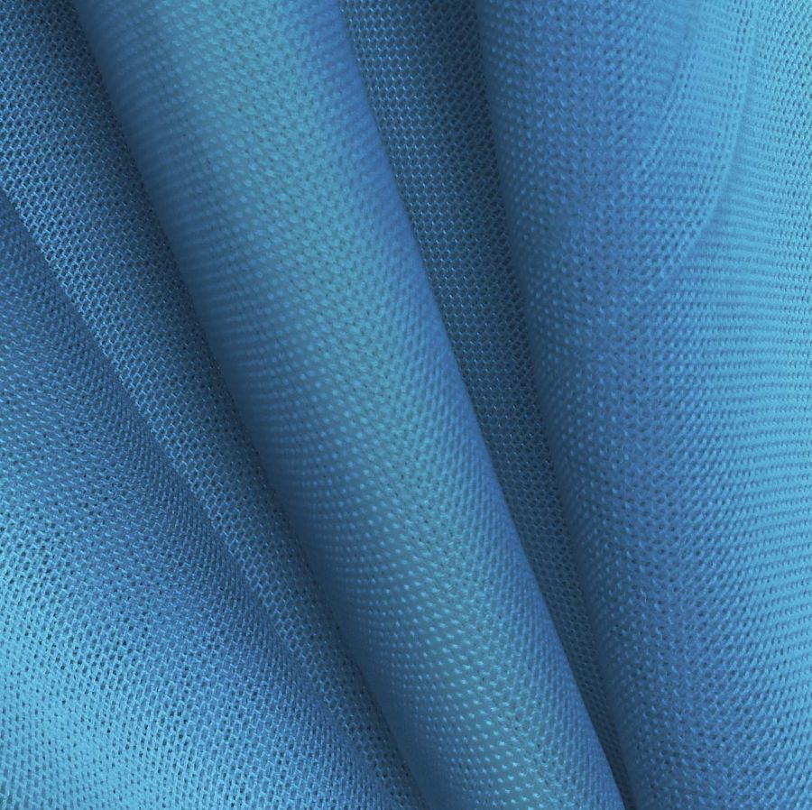 La tela base es el Tul Elástico - Oslo, compuesta por 94% POLIÉSTER y 6% ELASTANO, con un gramaje de 80 gr/m2 y una anchura de 147 cm. El color liso impreso es de tono Azul Pavo, con una combinación de tintas Cyan, Magenta, Yellow y Black en proporciones de 77, 46, 14 y 2 respectivamente. Este color secundario representa la tranquilidad y la calma, y se combina muy bien con otros colores fríos como el blanco, el gris, el plateado o el verde menta.