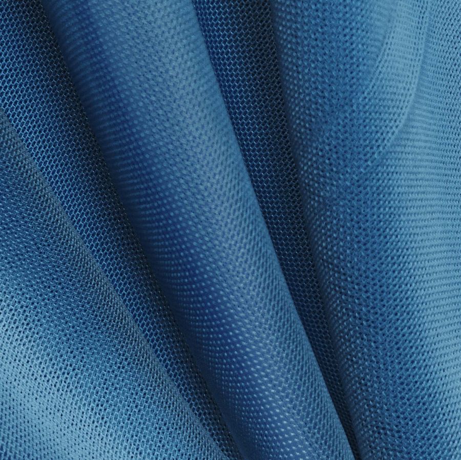 La tela base es el Tul Elástico - Oslo, compuesta por 94% poliéster y 6% elastano, con un gramaje de 80 gr/m2 y un ancho de 147 cm. El color liso impreso es Azul seda, con un CMYK de 98 71 31 17. El color seda refleja un tono suave, ligero y fresco, ideal para prendas de verano. Combina a la perfección con el blanco, el rosa suave y el gris plata, creando un efecto fresco y ligero en las prendas. La tela está impresa a una sola cara por impresión digital textil, no es un tejido tintado sino impreso.