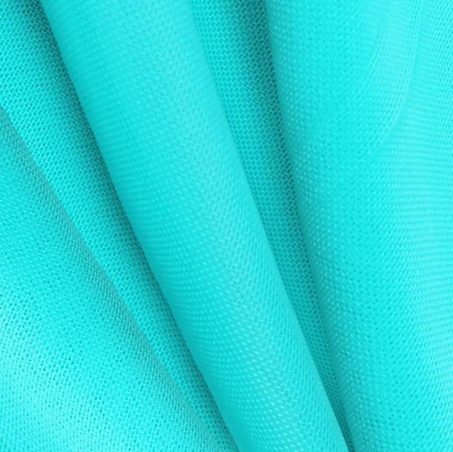 La tela base es el Tul Elástico - Oslo, compuesta por 94% poliéster y 6% elastano, con un gramaje de 80 gr/m2 y un ancho de 147 cm. En cuanto a su color liso impreso, se trata de un tono azul cian (CMYK: 57 0 15 0), con una textura visual y una transparencia propia del tul. Este color simboliza la estabilidad, la confianza y la frescura, y se combina especialmente bien con tonos neutros y suaves como el blanco, el gris y el rosa claro.